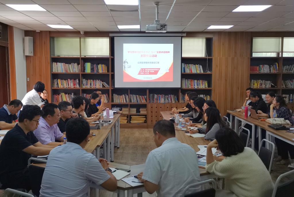 为深入学习贯彻习近平总书记“七一”重要讲话精神,结合学校应用型建设要求,9月2日下午,现代服务管理学院党总支在礼行楼信息化研创中心举行“应用型课程体系建设汇报”主题党日活动。现代服务管理学院全体教职工参加了此次活动,活动由教工第一党支部书记孙晟主持。本次主题党日是学院党总支学习贯彻习近平总书记“七一”重要讲话精神系列活动之一,旨在“深学笃行‘七一’重要讲话,全力推进学院应用型建设”。