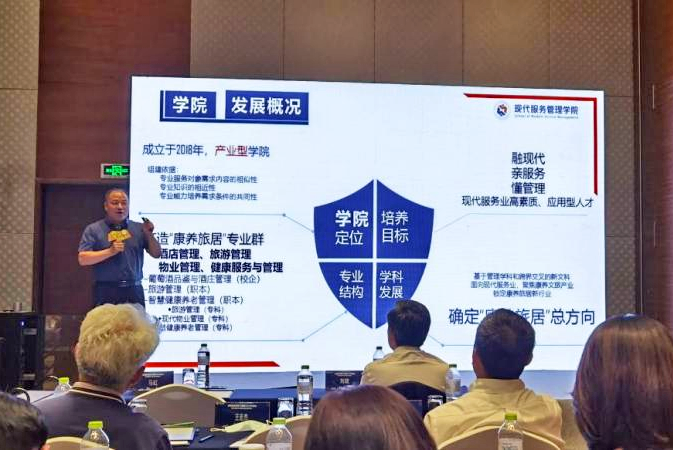 杨文凯在报告中以积极老龄化中的“健康、参与、保障”以及“应对、表现、贡献、影响、超越”五种需求剖析了积极老龄化背景下的“物业+养老”的产业创新路径和人才培养情况,并分享了学校面向现代服务业、聚焦康养文旅的办学特色,结合现代服务管理学院跨学科、产业型的办学探索,以专业群融合培养积极老龄化背景下的应用型人才的经验做法。杨文凯还指出,随着物业管理规模不断扩大和业主要求的持续提高,行业对从业人员、尤其是主要经营管理负责人的要求越来越高:会经营、善管理、知法律、懂工程且具有创新开拓精神的复合型人才需求激增,应该进一步鼓励和支持人才培养项目。此外,鉴于我国的社区养老与居家养老界限尚不清晰,当前的社区养老机构除部分专业养老机构在运营外,还有很多物业企业勇挑重担,“物业+养老”的社区居家养老需要物业企业与社区组织紧密联系、协同合作,共同实现普惠大众的社区居家养老。