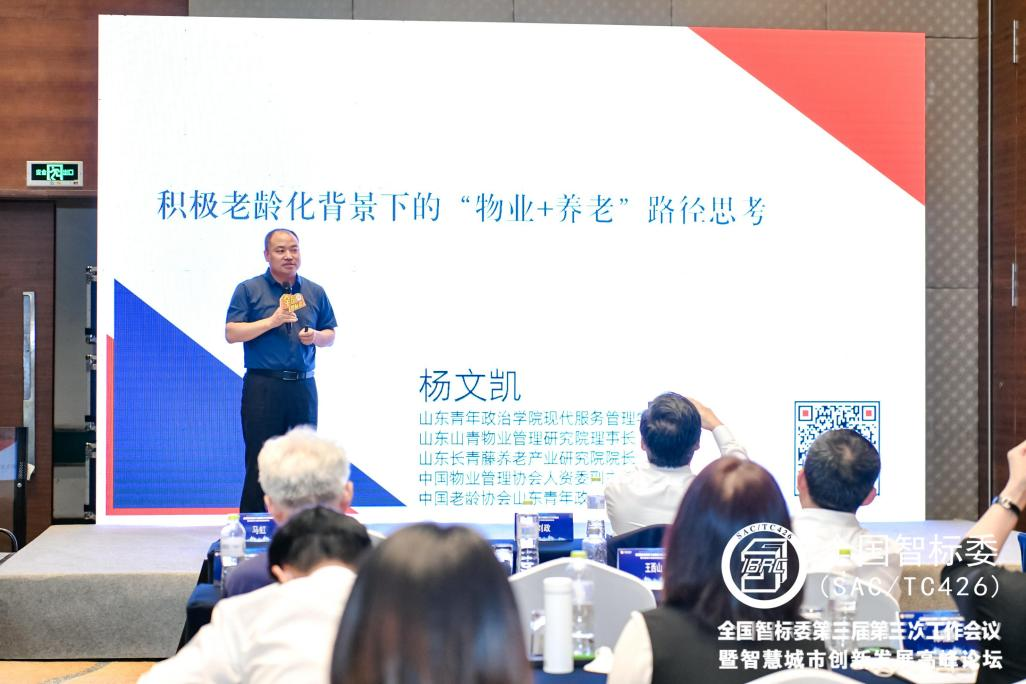 由全国智能建筑及居住区数字化标准化技术委员会主办的“全国智标委第三届第三次工作会议暨智慧城市创新发展高峰论坛”于7月29日-30日在青岛举行。我校现代服务管理学院院长杨文凯受邀出席并在“物业+养老”融合发展分论坛上做题为《积极老龄化背景下的“物业+养老”路径思考》的主旨报告。