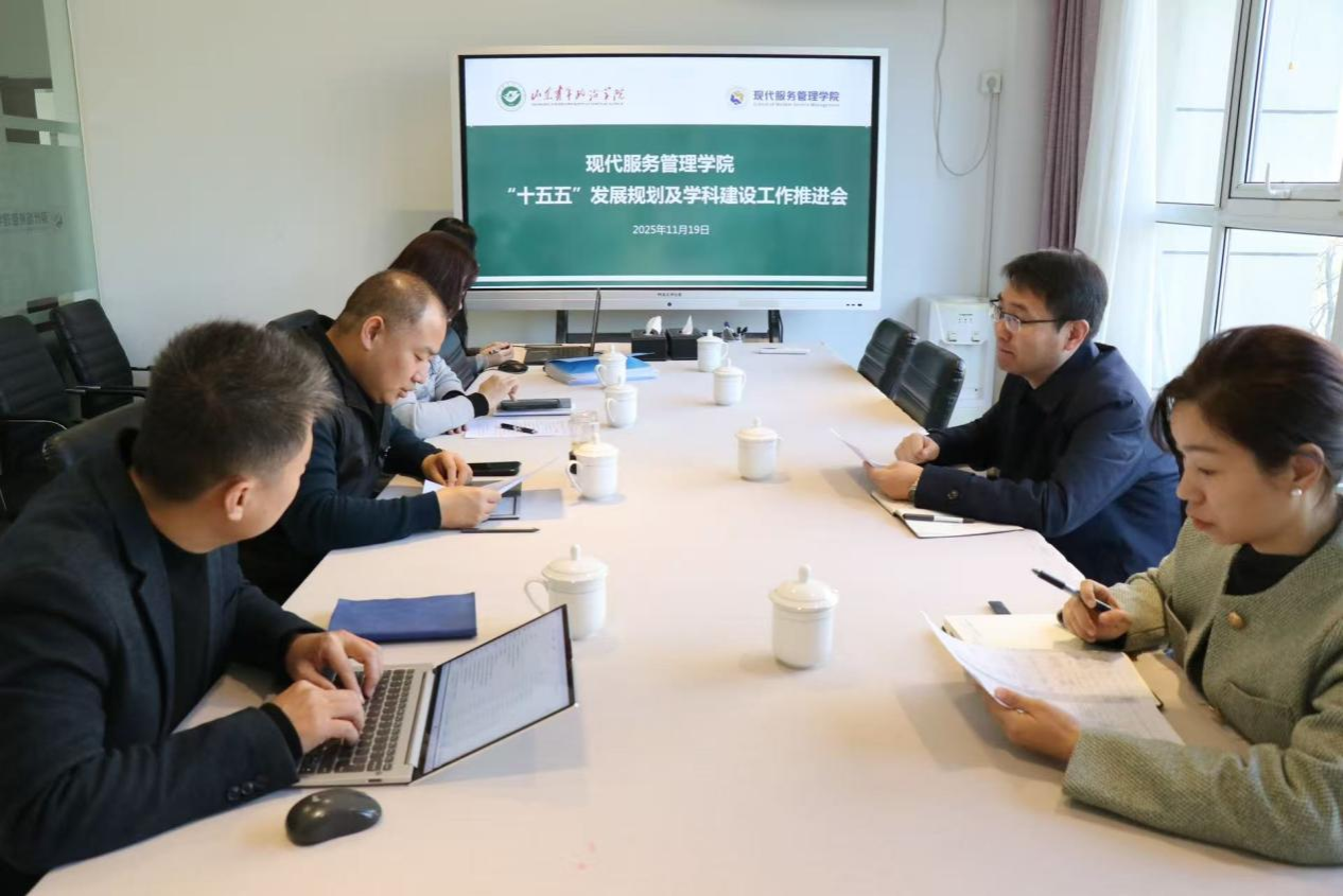 为高效推进学院“十五五”规划编制工作,优化学科专业建设方向,提升学院整体办学质量,11月19日,现代服务管理学院召开“十五五”发展规划及学科建设工作推进会。发展规划与学科建设处处长李亚光、副处长沈路,学院领导班子及学科骨干教师代表参加会议。