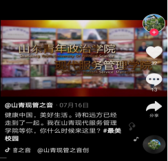 学生党支部以实际行动支持并参与到学院的招生工作中,充分发挥党员的先锋示范作用。围绕新媒体宣传,学生党支部组织策划了多种形式的新媒体宣传产品,充分发挥了学生的新媒体技术优势和创新能力。学生党员王文璇和丁可主动报名担任招生宣传视频拍摄的主持工作,克服了路程、天气、时间等多方面的困难;李晓钰、嵇常鑫等同学心系学院招生工作,多次往返济南选取优质的拍摄地点,以饱满的热情投入到学院招生宣传视频拍摄工作中,努力为学院招生宣传工作贡献一份力量。通过同学们的讲解,真实、形象地展现了学院优质的办学条件、高端的硬件设施,把学生日常生活与学习环境和学院的特色与优势展现给莘莘学子,让更多考生和家长更直观的了解到学校和学院特色。同时,学生党支部充分借力“山青现管之音”抖音号,开展系列活动,充分利用身边的资源,用短视频的方式,讲述着现代服务管理学院的故事,分享着现代服务管理学院学子的青春风采,充分展示出现管“礼行天下、学启未来”的院训。