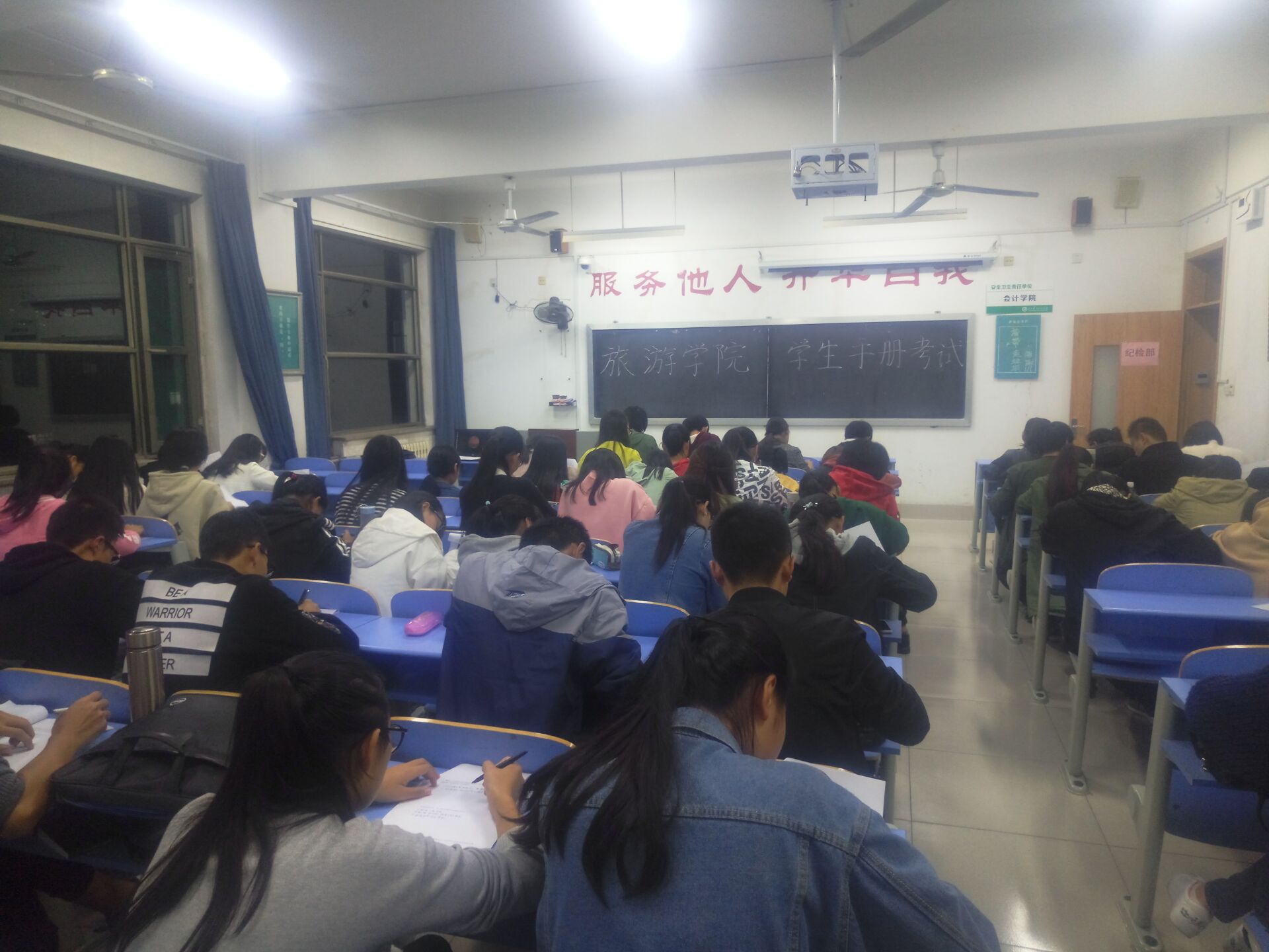 为了提高旅游学院新生个人素质,加深新生对山东青年政治学院相关管理方式的了解,我院于2017年10月16日18:30分举行2017级《学生手册》的普查考试,本次考试为闭卷考试,由学生会主席团、纪检部部长担任监考官。