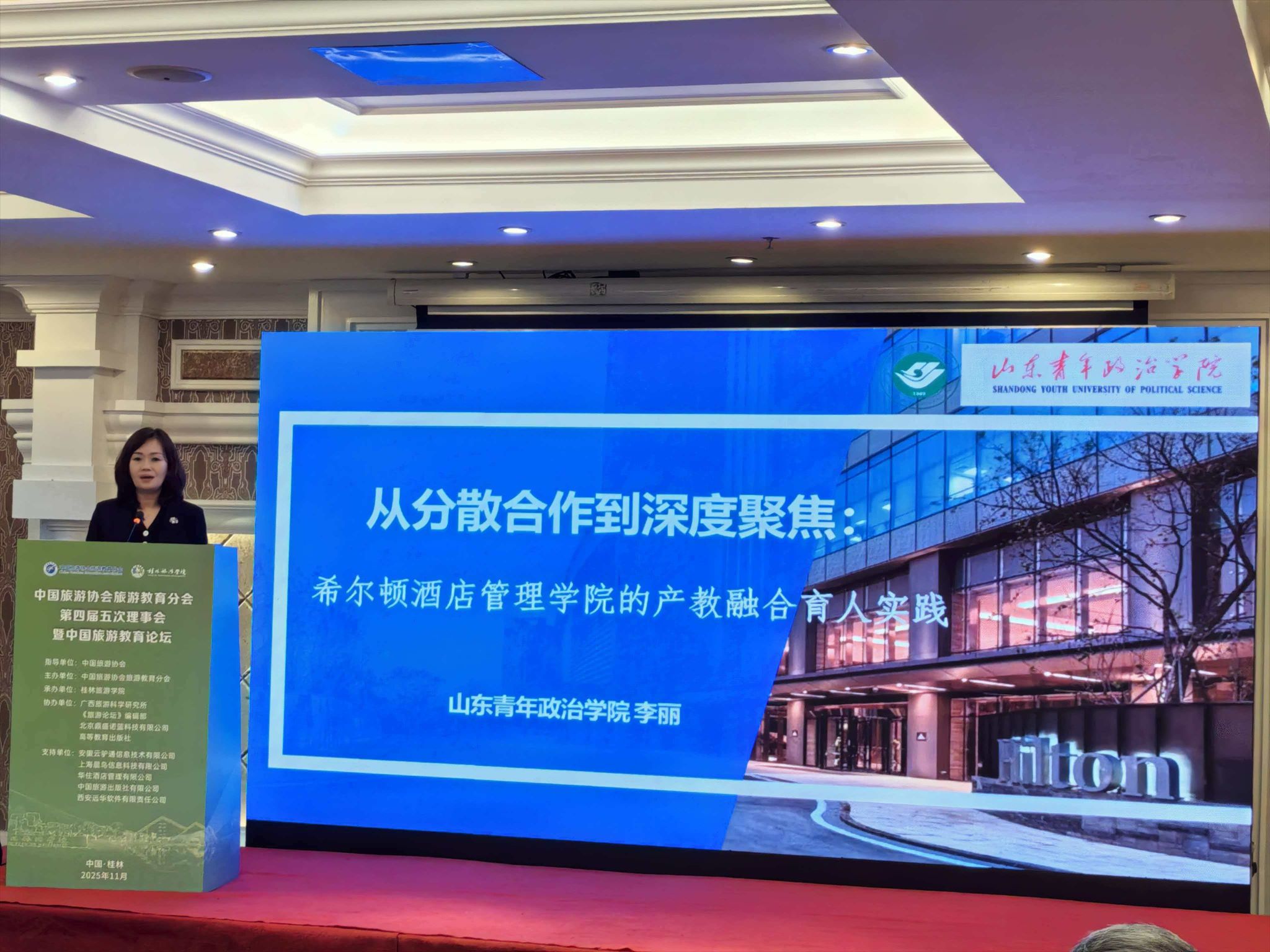 11月16日,由中国旅游协会指导,中国旅游协会旅游教育分会主办,桂林旅游学院承办的“中国旅游协会旅游教育分会第四届五次理事会暨中国旅游教育论坛”在桂林召开。学校现代服务管理学院副院长李丽、酒店管理、旅游管理专业部分教师受邀参会,与来自全国旅游教育领域的专家学者、行业嘉宾及会员代表400余人齐聚一堂,围绕“数智领航旅游教育焕新”主题共话行业发展。