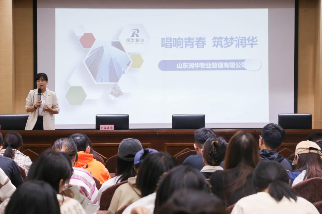 为推进学院2024届毕业生更加充分、更高质量就业,加强过程性指导,持续强化就业服务,努力提升毕业生求职能力,近日,现代服务管理学院在礼行楼303举办了就业指导讲座暨第一期校园招聘宣讲会。此次就业指导讲座由银丰智慧物业服务集团有限公司人力资源部负责人罗文卿授课,邀请到银丰智慧物业服务集团有限公司、山东明德物业管理集团有限公司、山东润华物业管理有限公司三家企业进行招聘宣讲,学院物业管理专业60余名毕业生参加会议。