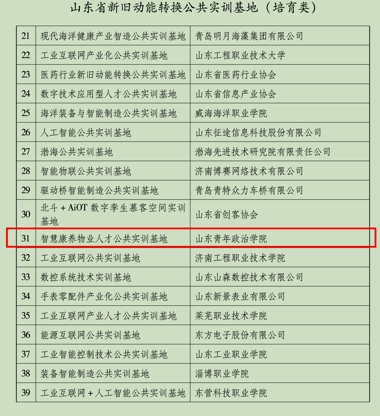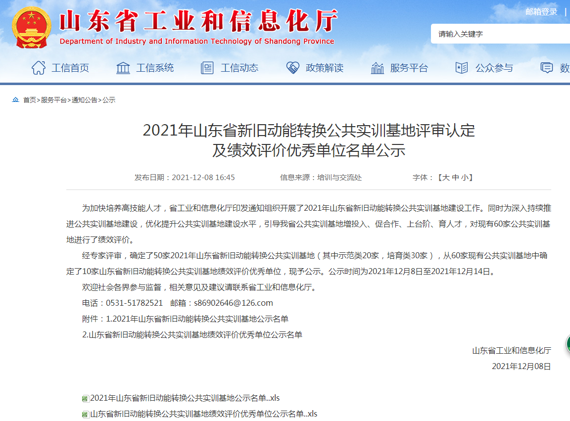 近日,山东省工业和信息化厅发布了《关于公布2021年新旧动能转换公共实训基地名单的通知》(鲁工信培〔2021〕278号),确定了50家2021年山东省新旧动能转换公共实训基地,其中示范类20家,培育类50家。我校现代服务管理学院申报的“智慧康养物业人才公共实训基地”成功入选山东省新旧动能转换公共实训基地(培育类)。