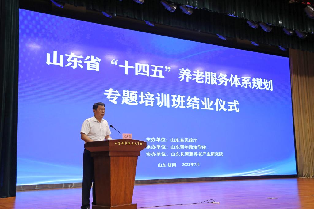 为实施积极应对人口老龄化国家战略,全面提升地方分管领导干部养老服务政策水平,促进全省养老服务高质量发展,7月9日-12日,由山东省民政厅主办、山东青年政治学院承办、山东长青藤养老产业研究院协办的山东省“十四五”养老服务体系规划专题培训班(省委组织部班)在济南成功举办,培训对象为全省各市政府分管领导和各县(市、区)政府分管领导,共计150余人。