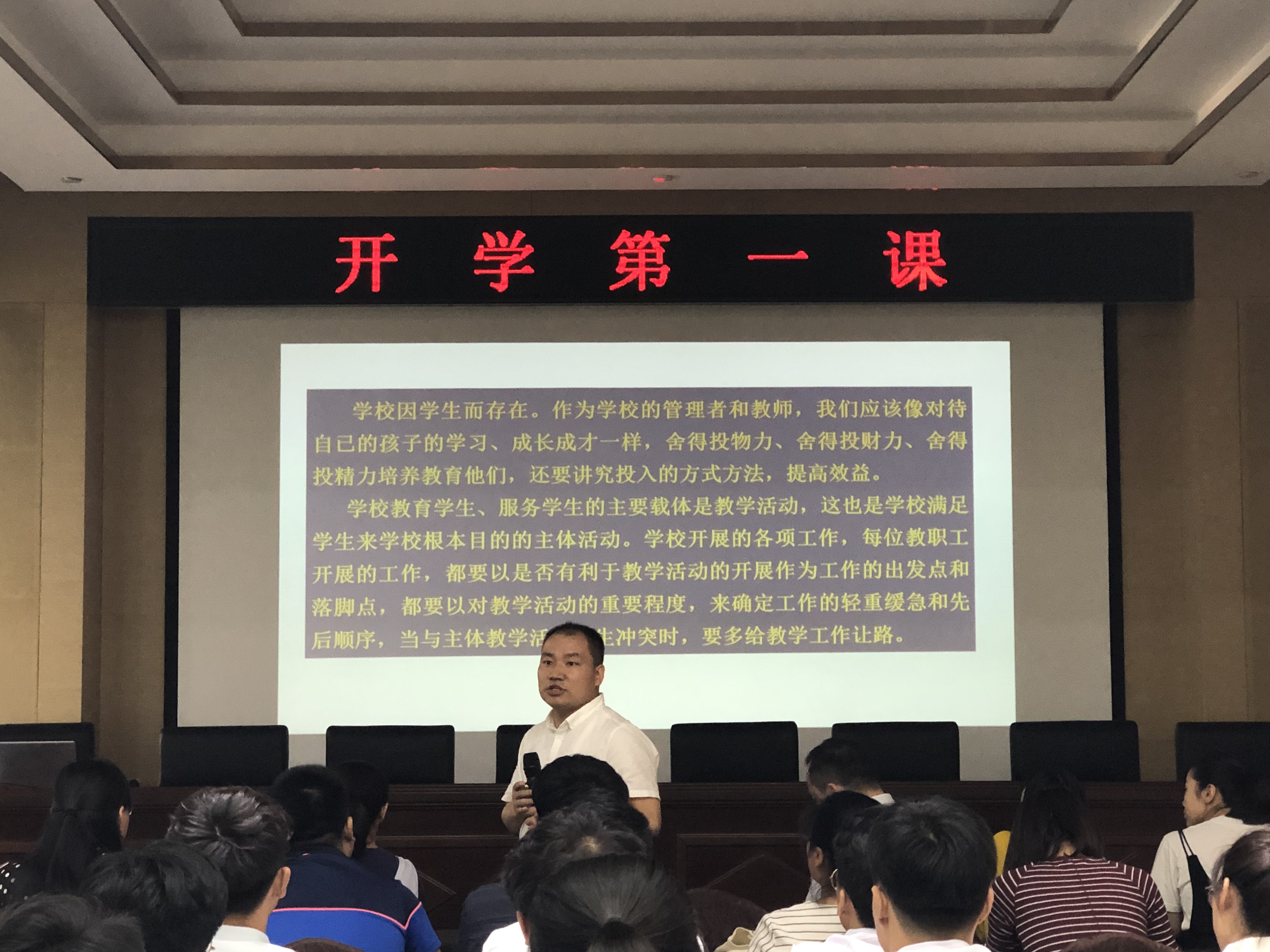 为进一步增强广大青年学生爱国爱党、爱校荣校意识,强化青年政治人才培养,推进课程思政建设,根据学校《关于开展“开学第一课”主题活动的通知》要求,学校党委委员、副院长陈雨海深入现代服务管理学院,为师生讲授题为《不忘初心、牢记使命——培养中国特色社会主义建设者和接班人》的“开学第一课”。