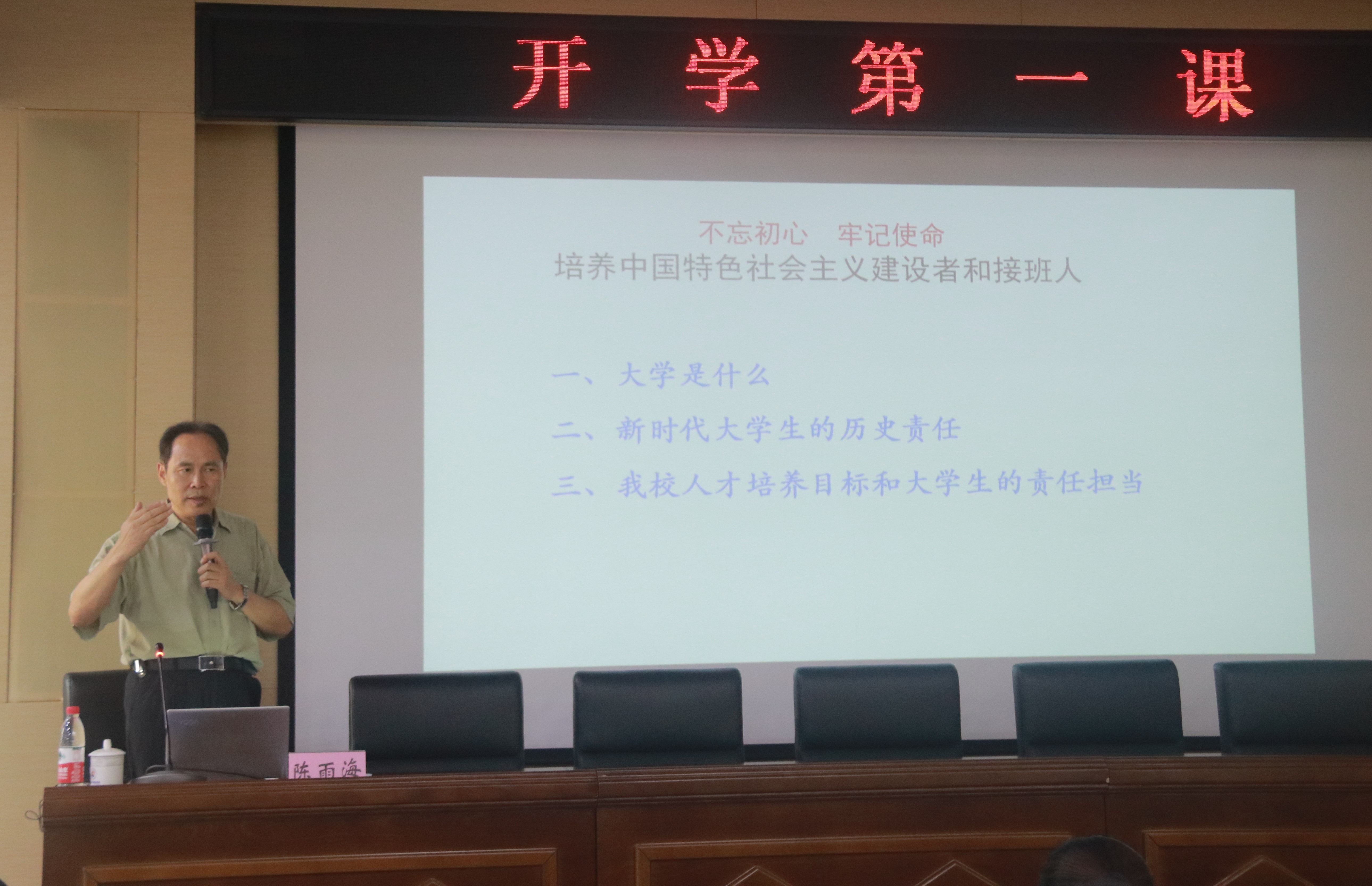 陈校长结合自身求学经历,从什么是大学、新时代大学生的历史责任、我校人才培养目标和大学生的责任担当三个方面深入浅出地阐释了培养新时代中国特色社会主义建设者和接班人的时代特征和深刻内涵。