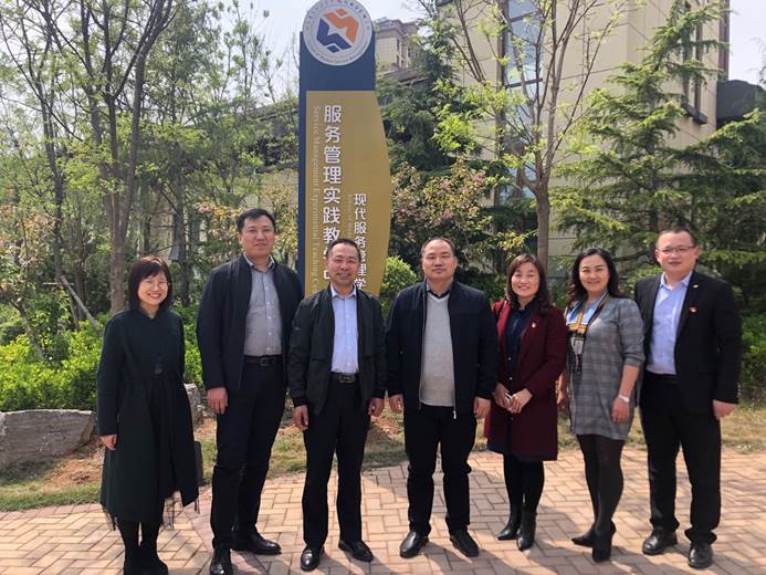 4月14日,山东京博控股集团政策研究室主任相爱新一行到我校现代服务管理学院交流考察,京博控股旗下山东达悦汇酒店总经理梁晓静,京博物业管理有限公司经营发展部经理刘晓燕等陪同考察。现代服务管理学院院长杨文凯、党总支书记衣海永、党总支副书记薛卿、相关教研室负责人等参加了座谈交流。