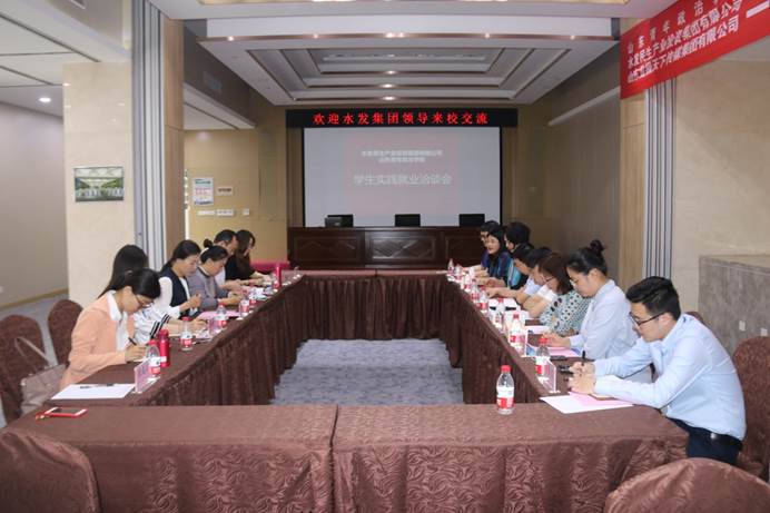 为进一步拓宽就业渠道,促进毕业生精准就业,推进产教融合发展,近日,现代服务管理学院与水发民生集团人事部举行了学生实践就业座谈交流会。水发民生集团党务人事部部长祁鲁及集团下属公司负责人,学院党总支副书记薛卿、各专业教研室负责人及教师代表、全体辅导员参加座谈。会议由学工办主任窦玉明主持。