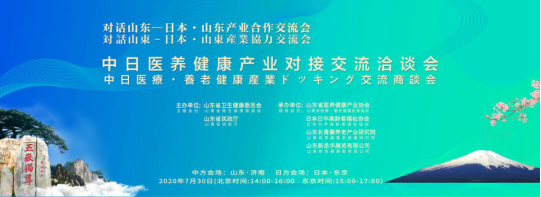 本次活动由山东省卫健委、山东省民政厅主办,山东省医养健康产业协会、山东长青藤养老产业研究院等单位承办。作为“对话山东—日本∙山东产业合作交流会”的主要配套活动,采取线上线下结合、以线上为主模式在山东济南与日本东京同步举行。山东省卫健委党组书记、主任袭燕,副主任马立新,山东省民政厅二级巡视员牛学宝,中日双方多家康养领域的标杆企业和机构领导参加。