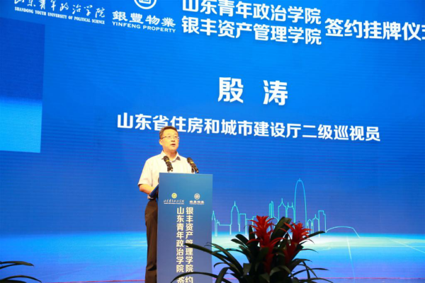 山东省住房和城乡建设厅二级巡视员殷涛在致辞中指出,物业行业正处于由粗放型发展模式向集约化、智慧化、品质化发展模式转型的关键时期,山东青年政治学院与银丰物业集团合作成立产业学院,共同致力于应用型物业管理人才的培养,恰逢其时。希望山东青年政治学院银丰资产管理学院能够引领行业标准,不断为行业培养出更多更优秀的人才。
