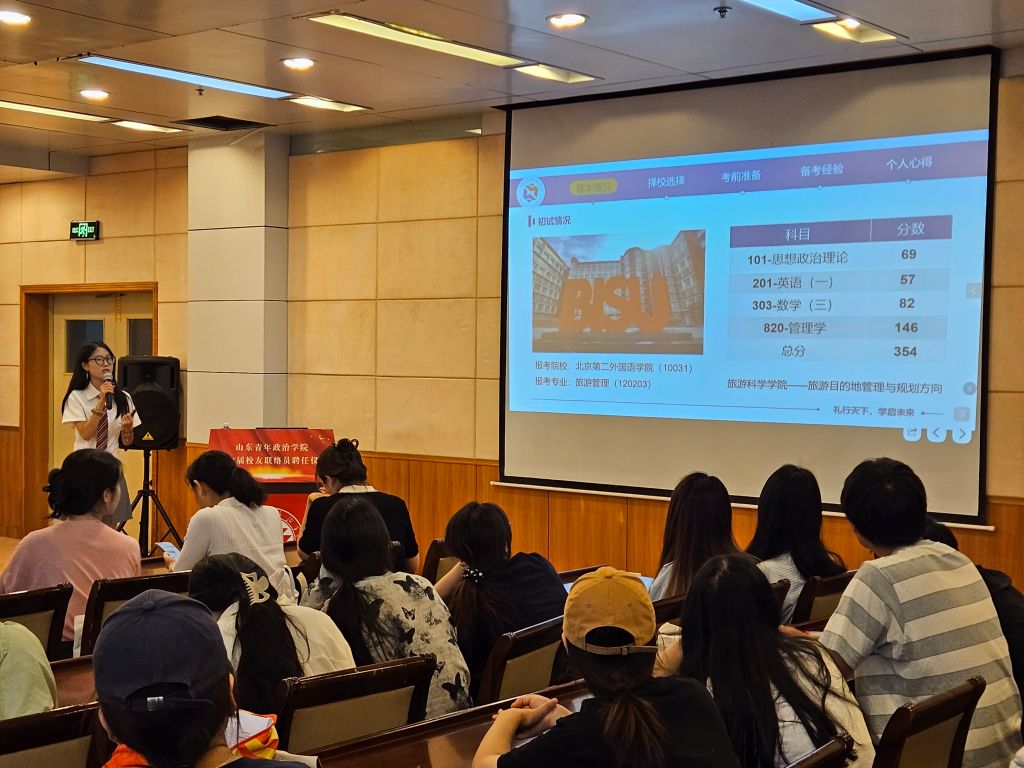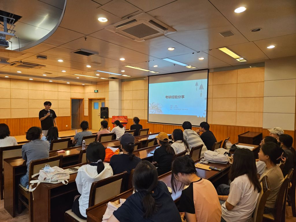 分享环节中,考研学生代表祝令瑶、杨童、潘亚晴、李航依次上台,结合自身考研经历,从考研的整体规划、备考策略、学习资源的获取方法等方面给学生们提供了宝贵的经验与建议。