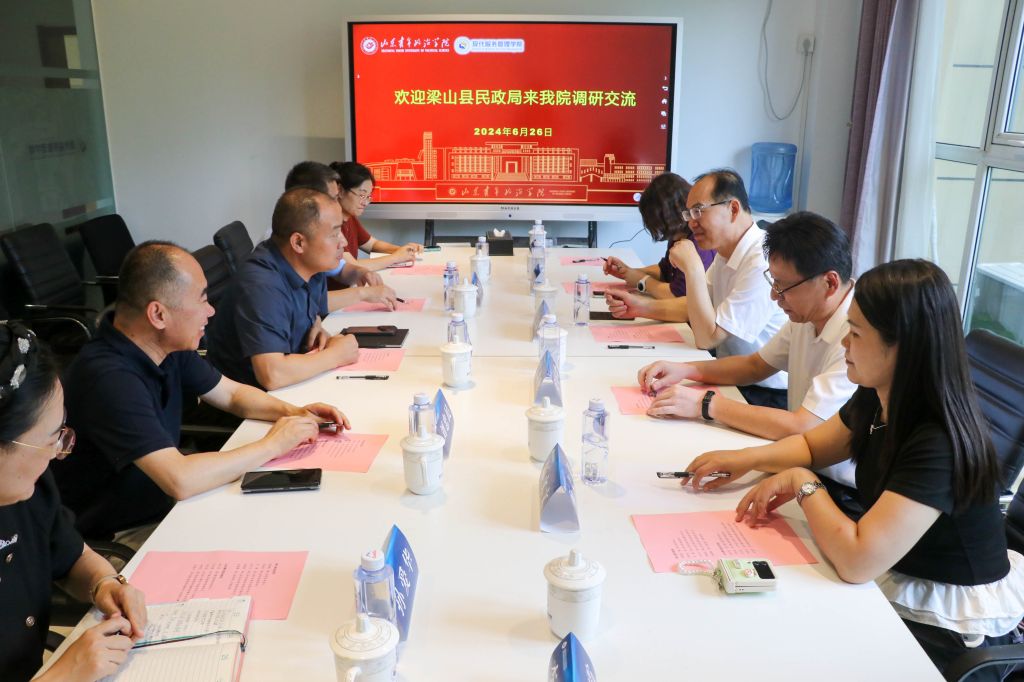 6月26日,梁山县民政局局长赵新春、副局长安培珍、养老服务科科长吴雁等一行6人到现代服务管理学院考察交流。现代服务管理学院院长杨文凯、副院长尹洪禄及山东省山青资产经营有限公司副总经理刘忠民等参加交流。