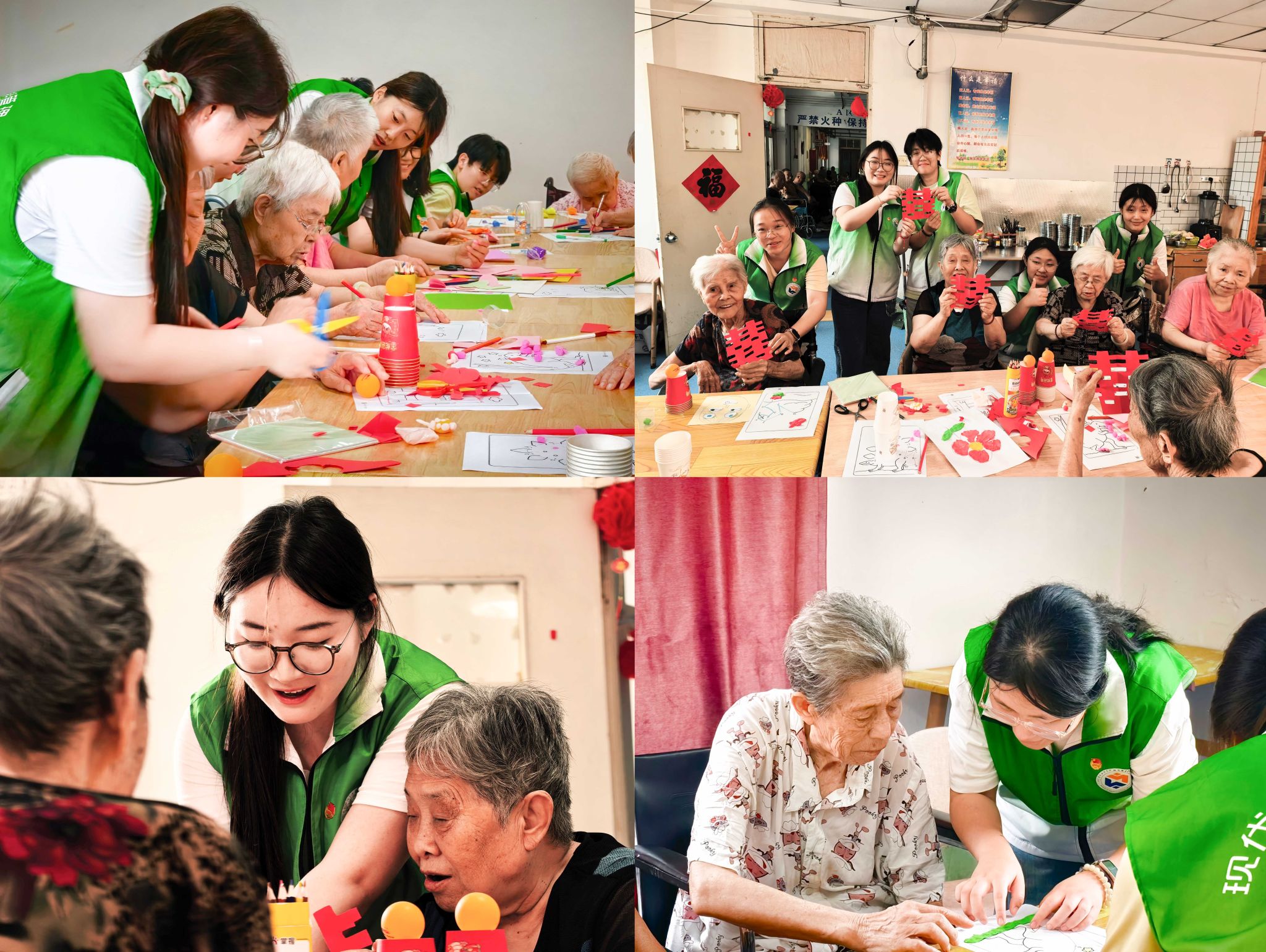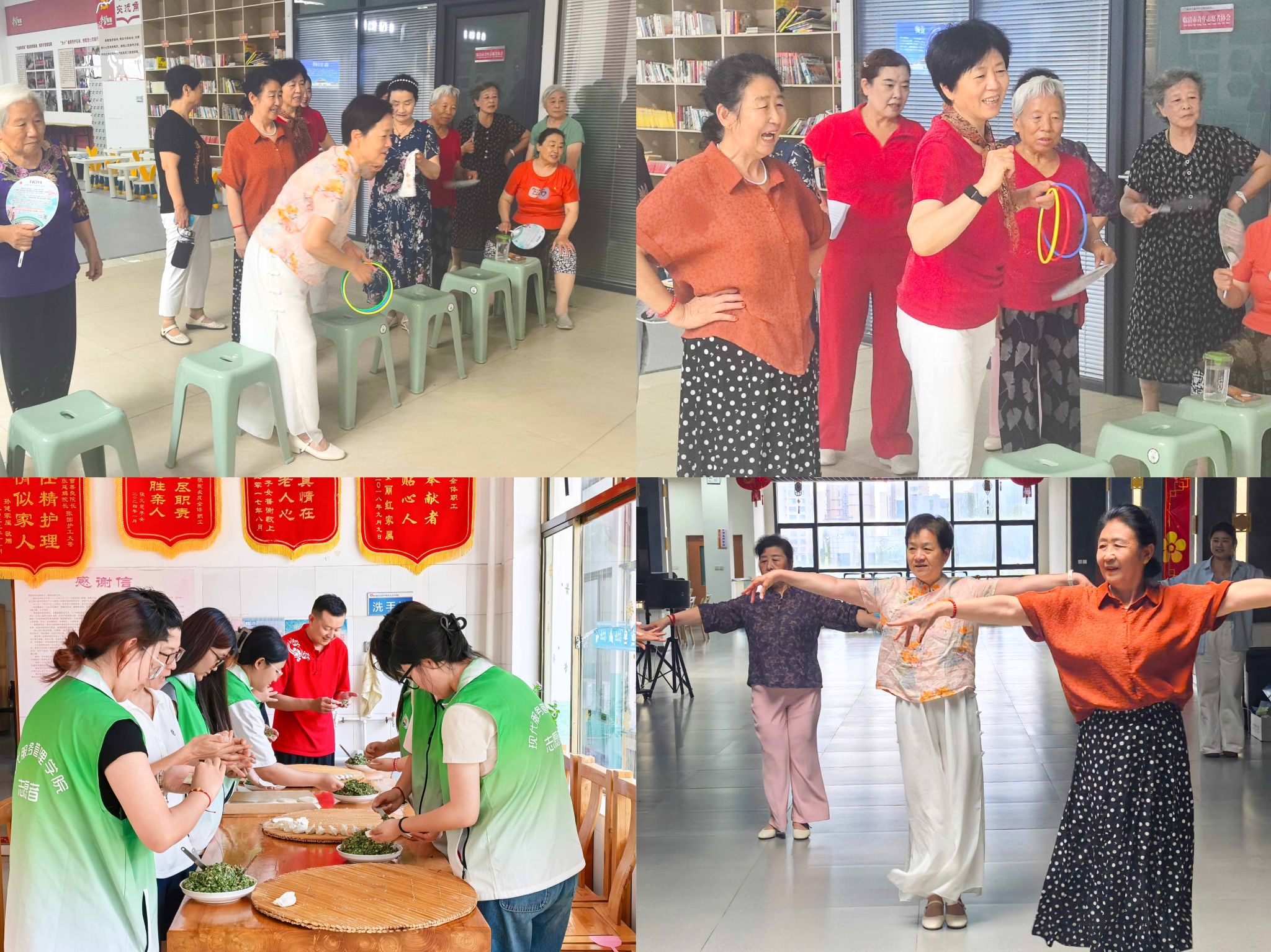 杏林暖桑·颐乐谱新章——专业赋能绘就幸福长卷。为丰富基层养老服务机构的服务内容,社会实践团队与省派第一书记工作组深入4家养老机构,为老年人量身定制文化活动。在拉丁舞教学环节,志愿者们耐心示范、细心引导,让长者在优雅舞步中重拾青春活力;在套圈游戏现场,志愿者们热情讲解规则、维护秩序,长者们沉浸其中,尽享游戏之趣;在趣味捏泥活动中,志愿者们陪伴在侧、共同创作,在手工制作中激发长者创造力,锻炼思维能力;在新华博爱护理院的食堂里,志愿者们亲手为老人们包制韭菜肉水饺,厨房里蒸汽氤氲,映照着志愿者们青春洋溢的脸庞,老人们吃到味道鲜美的饺子连连称赞。