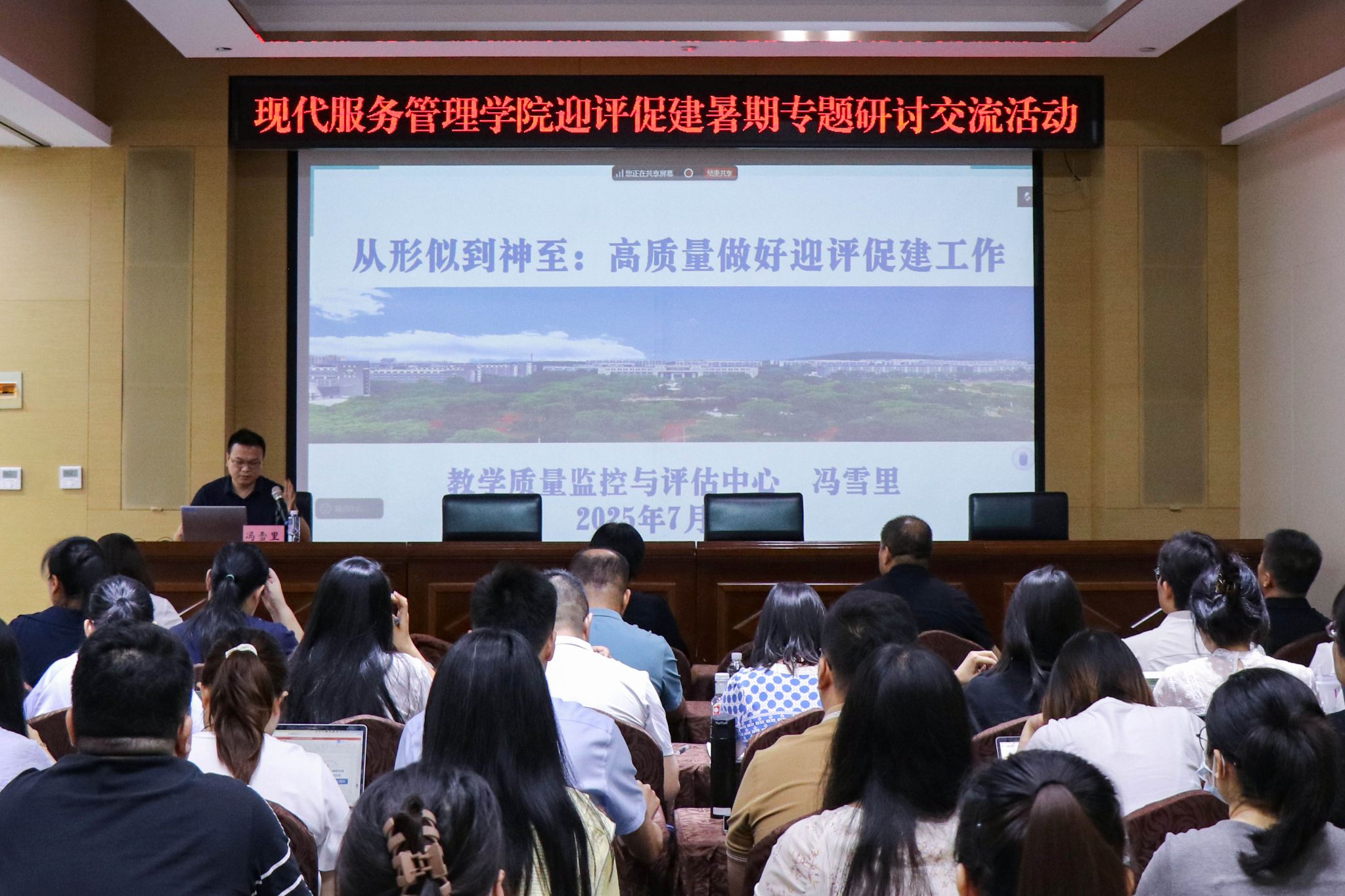 为深入推进迎评促建工作,系统提升专业与课程质量,7月16日至18日,现代服务管理学院举办了暑期迎评促建专题研讨活动。学校党委委员、副院长张杰现场指导工作,教务处处长白洁、教学质量监控与评估中心副主任冯雪里分别进行点评和政策解读。现代服务管理学院副院长李丽主持活动。