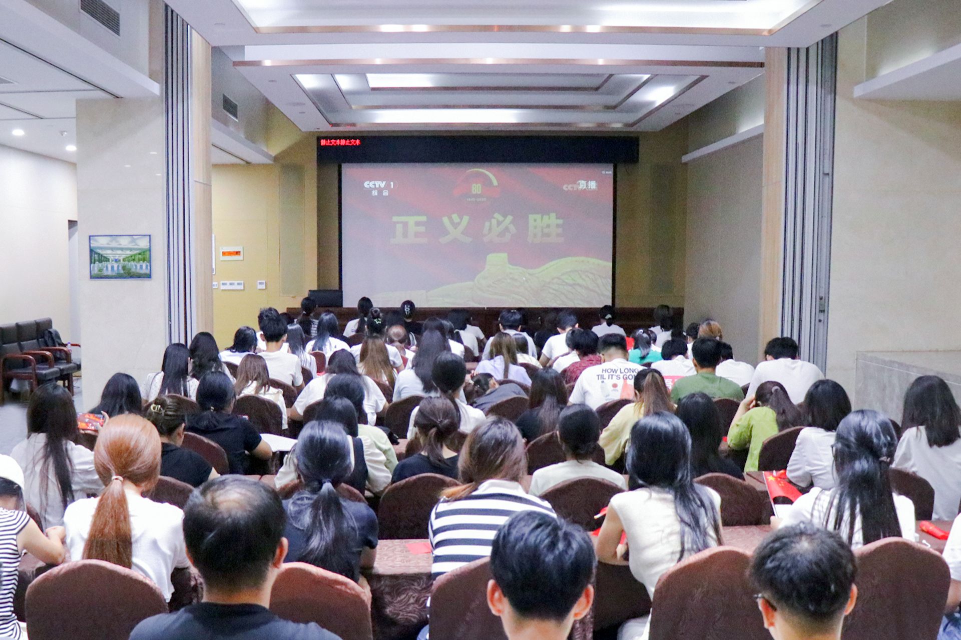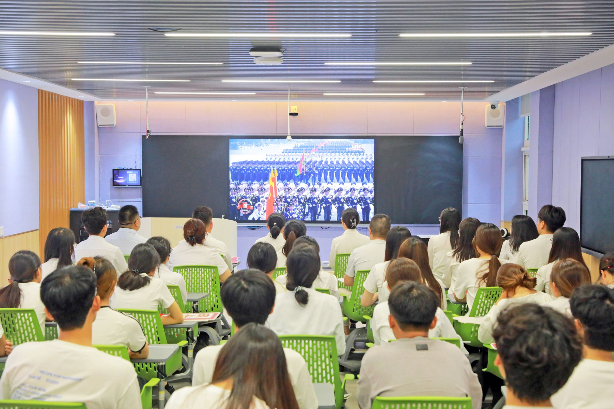 9月3日上午,学院师生集中收听收看纪念中国人民抗日战争暨世界反法西斯战争胜利80周年大会,认真聆听中共中央总书记、国家主席、中央军委主席习近平发表的重要讲话。当晚,师生一同观看了纪念中国人民抗日战争暨世界反法西斯战争胜利80周年文艺晚会。通过观看直播盛况,广大师生进一步了解了中国共产党在全民族抗战中的中流砥柱作用,深刻缅怀了战争中浴血奋战的革命先烈,也让正义必胜、和平必胜、人民必胜的永恒真理更加深入人心。