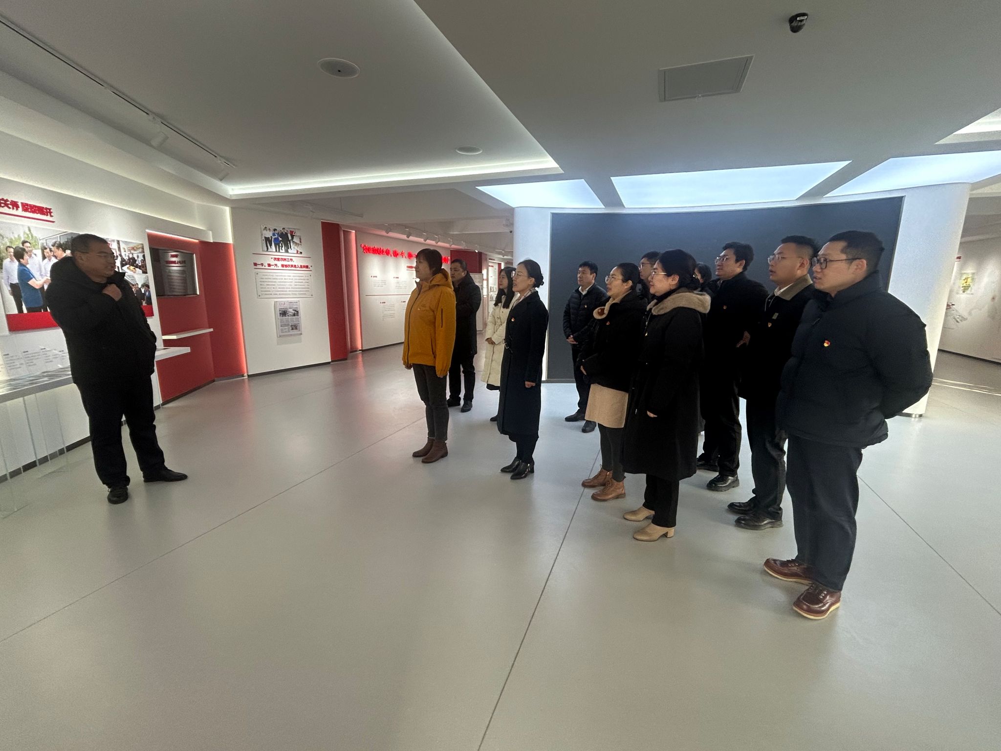 作为乡村振兴的齐鲁样板示范村,三涧溪村的蝶变之路是基层党建引领发展的生动写照。党员们先后参观了村党群服务中心与乡村振兴展馆,通过珍贵图片、详实数据和实物展品,系统学习了三涧溪村“党建领航、产业领富、文化领魂”的发展战略,深入了解其从“乱”到“治”、从“穷”到“富”的转型历程,对“四邻联动”的治理体系有了更加直观地认识。