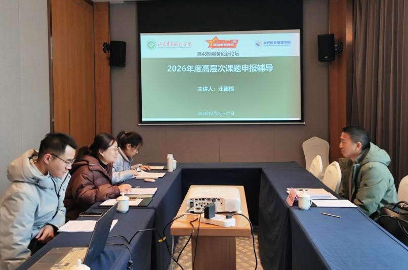 为扎实推进高层次科研项目申报工作,切实提升教师课题论证质量,2月26日至27日,现代服务管理学院组织开展了高层次课题申报精准辅导交流会暨第48期服务创新论坛。活动邀请苏州大学汪德根教授进行现场指导,院长杨文凯、副院长尹洪禄及申报2026年高层次课题的教师共同参会,活动由院长杨文凯主持。