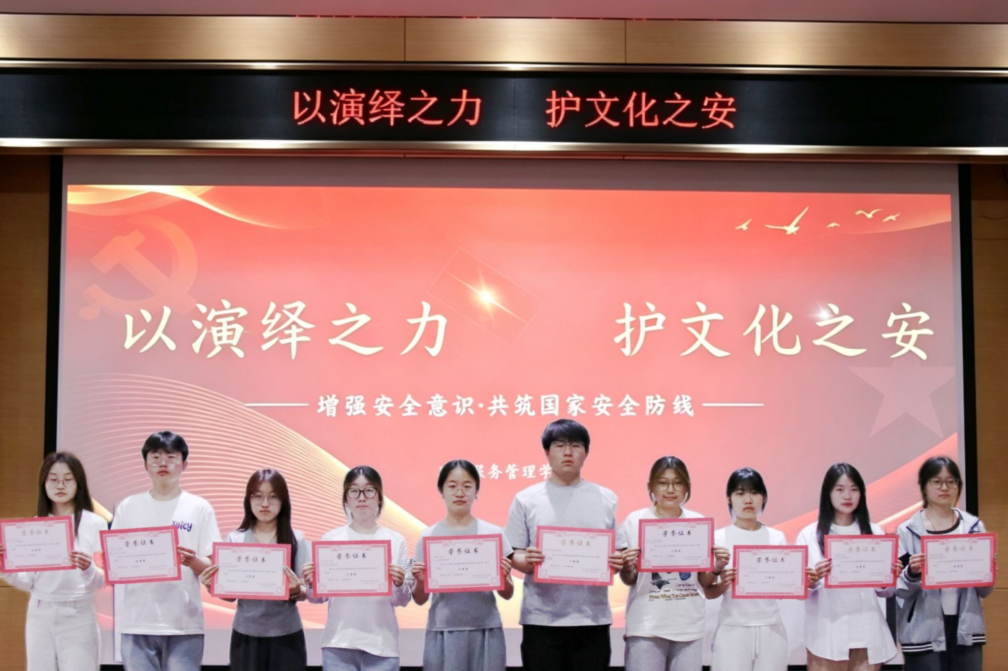 为深入贯彻落实总体国家安全观,切实增强青年学子的文化安全意识与责任担当,现代服务管理学院立足服务类行业需要和青年学生成长需求,创新采用主题班会、辩论赛、趣味互动、情景演绎等多元形式,于4月8日-14日精心组织举办“国安筑防,文脉润心”主题系列活动,引导学生在专业语境中感悟文化安全内涵、在实践体验中筑牢国家安全防线,切实推动国家安全教育走深走实。