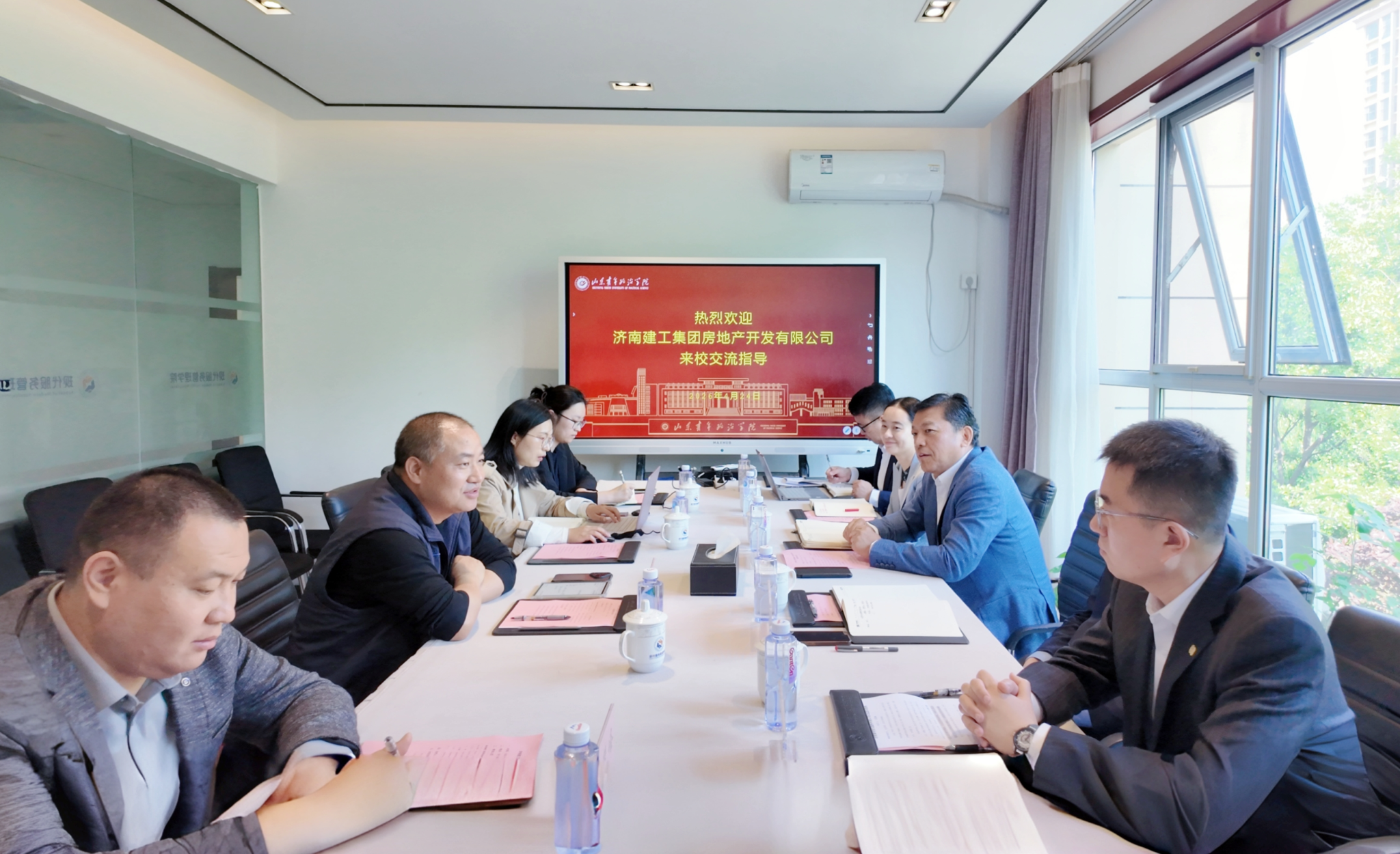 4月24日上午,济南建工集团房地产开发有限公司党委书记、执行董事、总经理徐洪涛一行到访山东青年政治学院现代服务管理学院,双方在谨行楼二楼会议室举行交流座谈会。会议由现代服务管理学院院长杨文凯主持,学院物业管理教研室骨干教师参加座谈。