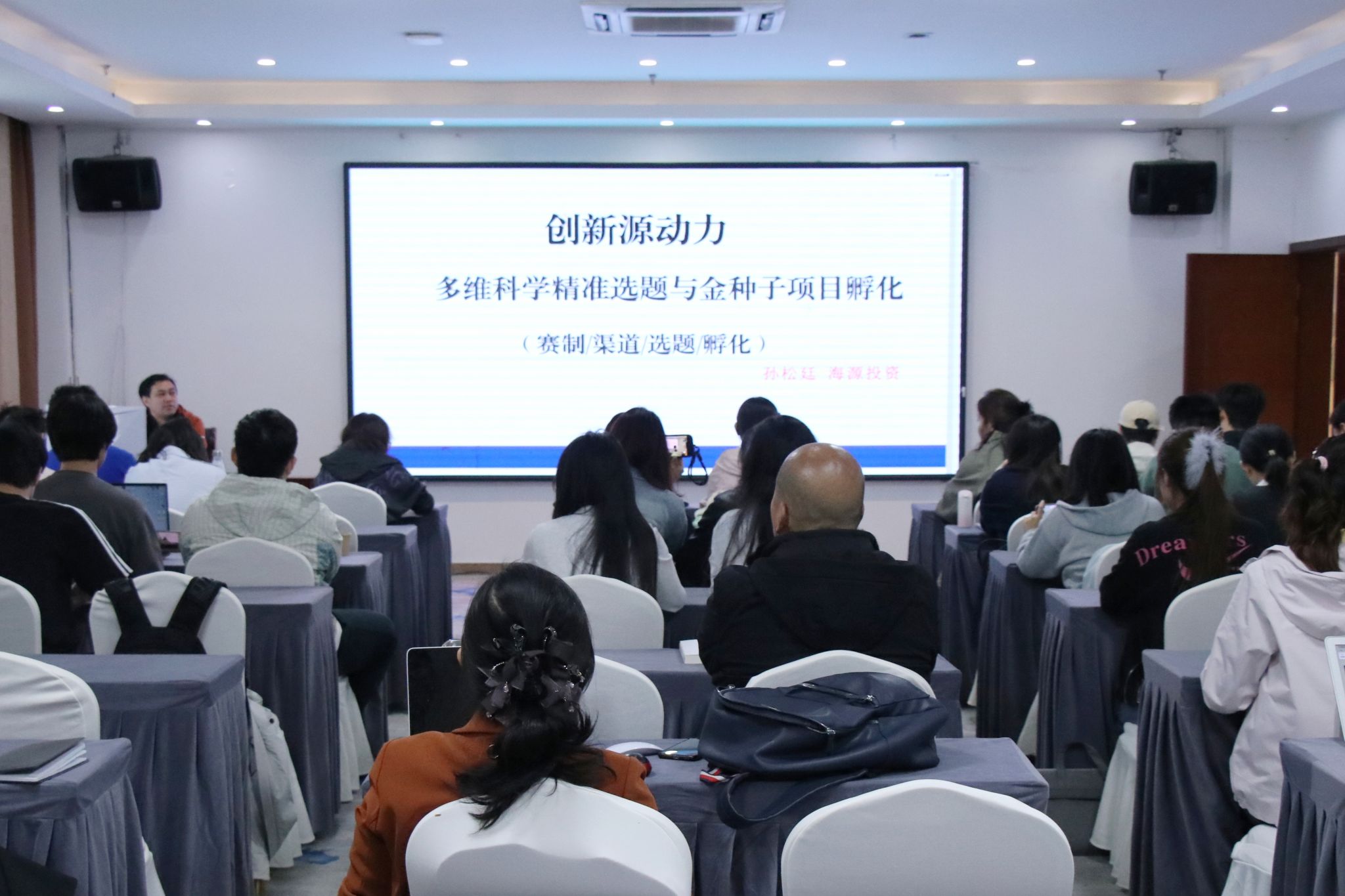 4月24日上午,中国创新创业大赛国赛评委、山东海创策源投资有限公司(海源资本)总经理孙松廷受邀作专题培训。孙松廷围绕《创新源动力——多维科学精准选题与金种子项目孵化》主题,从中国国际大学生创新大赛赛制解读及最新变化、项目渠道搭建与精准科学选题、科学孵化与有效转化的赋能策略三个方面进行了系统深入的讲解。他结合自身评审经验,深入剖析了大赛评审要点和备赛关键环节,为参训师生厘清了项目选题的底层逻辑,提出了优质项目从挖掘、培育到转化的全链条实操路径。参训师生纷纷表示,培训内容既有理论高度又有实操深度,为后续备赛工作提供了行动指南。