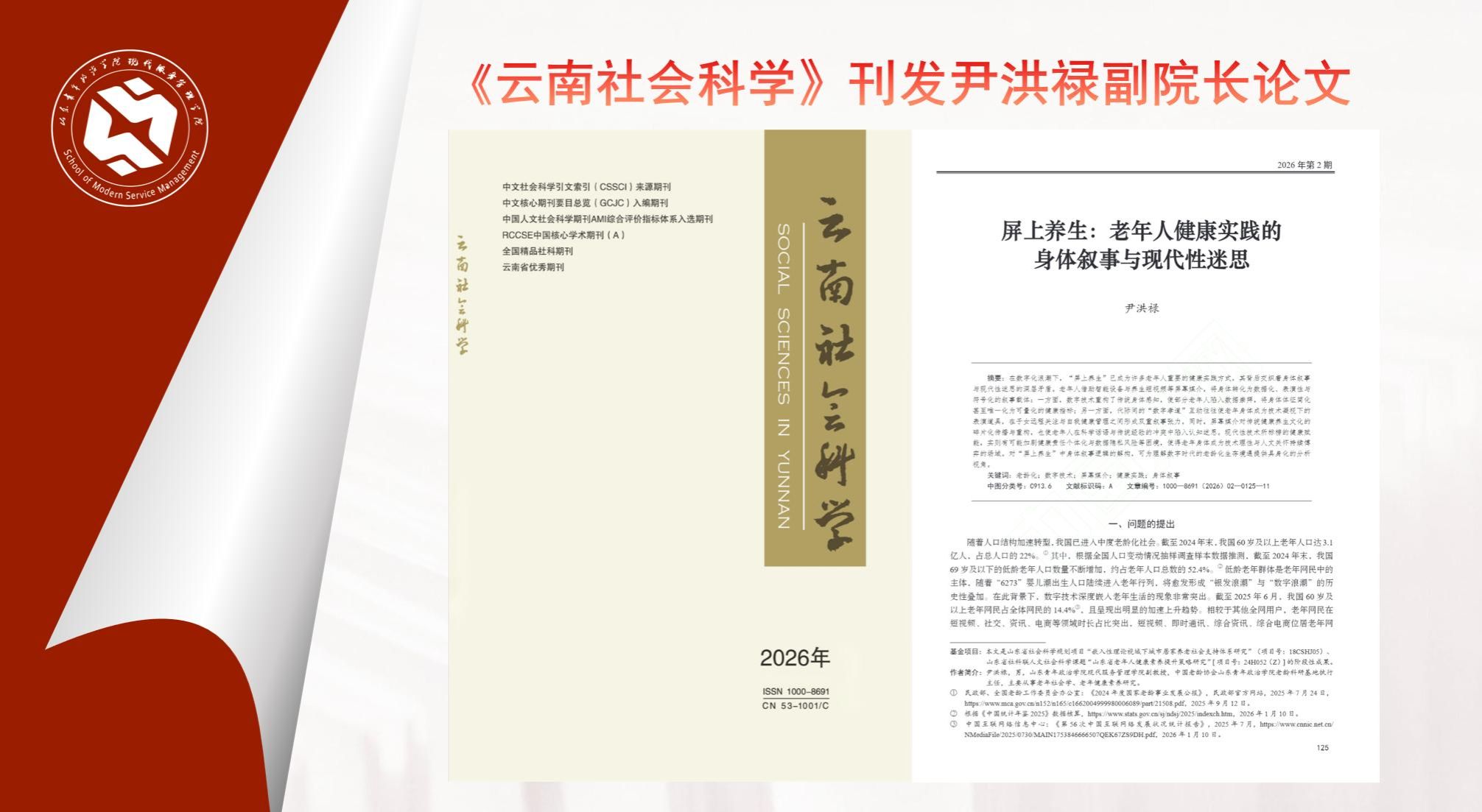 中文社会科学引文索引(CSSCI)来源期刊《云南社会科学》(2026年第2期)刊发尹洪禄副院长论文《屏上养生:老年人健康实践的身体叙事与现代性迷思》。